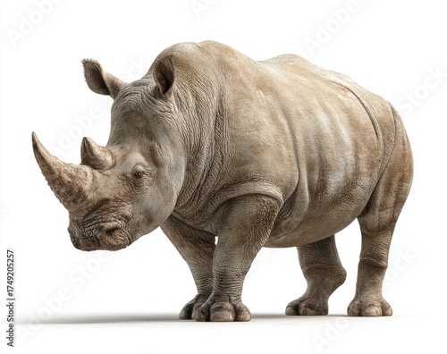 © Agus, Fototapeta premium Full shot of a large, light-gray rhino. Mature, powerful, isolated against white