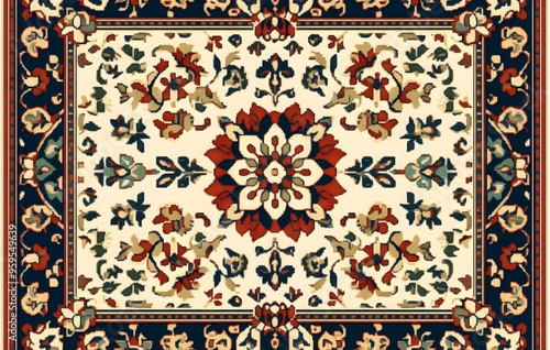 Obraz premium 40. **Full-size seamless vintage rug pattern with intricate floral and...