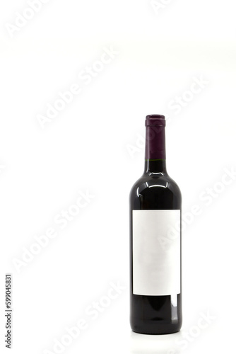 © Cerib, Fototapeta premium Full unopened bottle of red wine with blank label isolated on a plain white background. Copy space left and above.