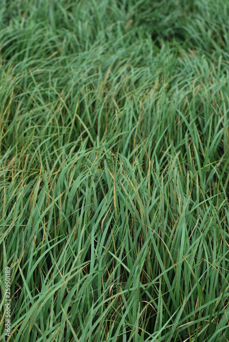 © Anna, Obraz premium Full view green grass closeup background with natural texture from a meadow field. Grass in wind movement. Soft lightning.
