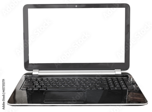 © vvoe, Fototapeta premium full view of black laptop with cut out screen