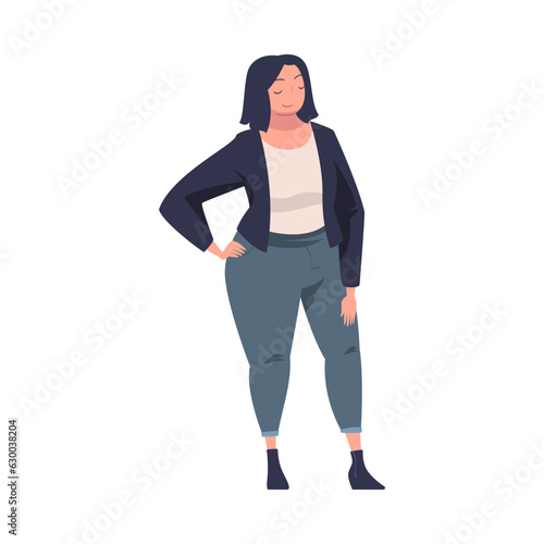 Fototapeta premium Full Woman Character with Plump Body Standing and Smiling Vector Illustration