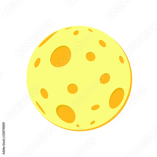 © Salamatik, Fototapeta premium Full yellow moon with Craters in the Universe. Simple icon. Round piece of cheese food. Isolated on white background . Vector