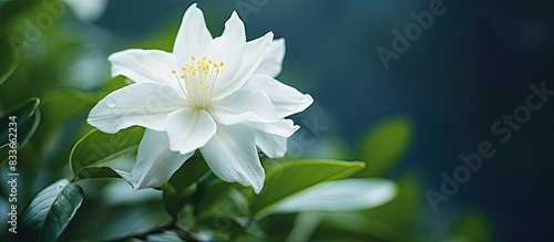 Fototapeta premium Fully blooming beautiful white flower. Creative banner. Copyspace image