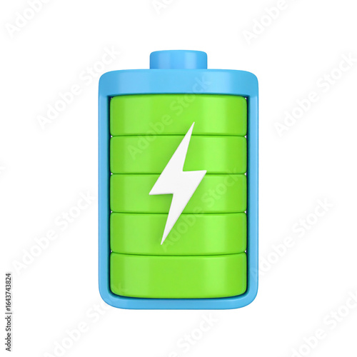 © MD, Obraz premium Fully charged battery level with energy bolt symbol on transparent background