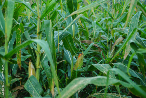 © ณัฐวุฒิ เงินสันเทียะ, Obraz premium Fully grown corn ready to be harvested
