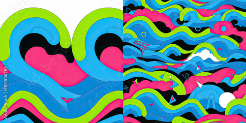 Fototapeta premium Fun and Funky Washi Paper Design with Waves