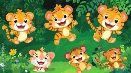 © Official, Naklejka premium Fun and Lively Cartoon Tigers Vector Set
