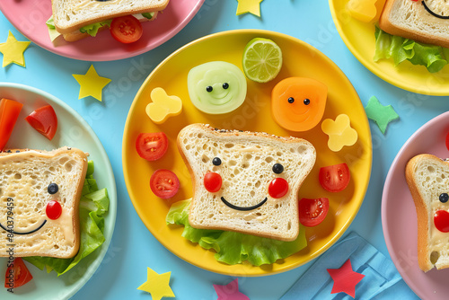 Obraz premium Fun and Playful Children’s Sandwiches with Creative Shapes