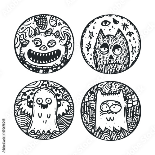 Fototapeta premium Fun and spooky cartoon characters for Halloween decorations. Halloween vector...