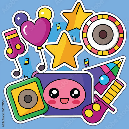 Obraz premium Fun Back to School Party Celebration with Music and Stars