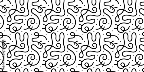 Obraz premium Fun black and white line doodle seamless pattern. Creative abstract squiggle...