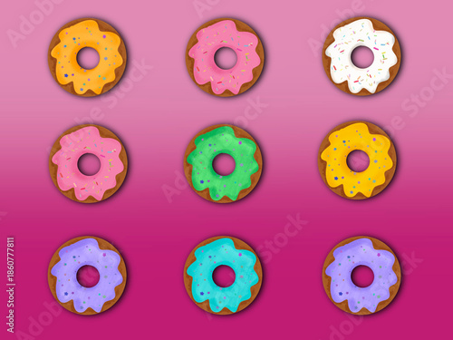 © Esti, Obraz premium Fun Festive Donuts Pattern