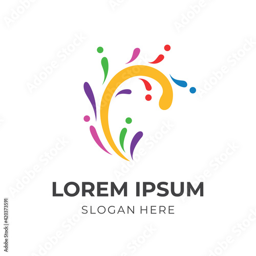 © Amelia, Obraz premium fun firework logo concept with flat colorful style