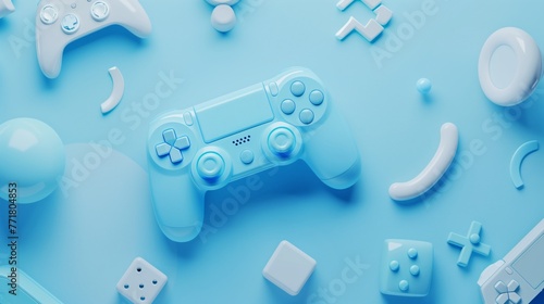 © Vladyslav Tykhonov, Naklejka premium Fun gaming banner, light blue colors. Gaming device on blue background