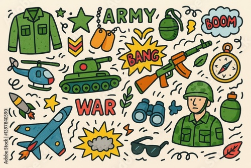 Fototapeta premium Fun Military Doodles for Creative Projects and Designs