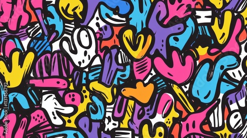 © Master old, Obraz premium Fun seamless scribble pattern background stock illustration