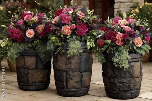 © Sung Hwan Kim, Fototapeta premium fun shaped flower pots made from cut-up old tires.