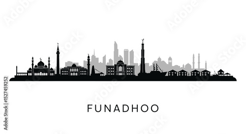 Naklejka premium Funadhoo Skyline Black Silhouette Vector.