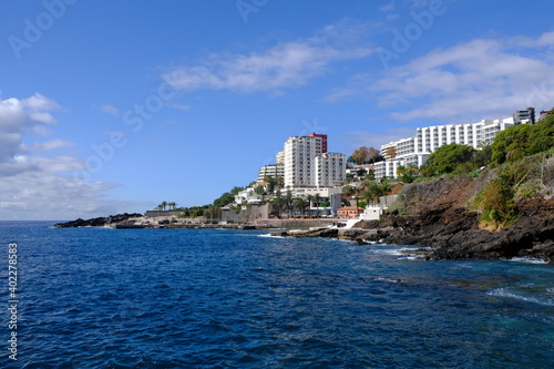© Jerry, Naklejka premium Funchal coastline and hotels, Lido area, Madeira Island, Portugal