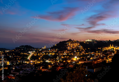 © ON-Photography, Naklejka premium Funchal Madeira Panorama Portugal Insel Atlantik Nacht Abend Dämmerung blaue Stunde Sonnenuntergang Farben Himmel Lichter Häuser Langzeitbelichtung Hauptstadt Reise Tourismus Hügel Küste Hafen Skyline