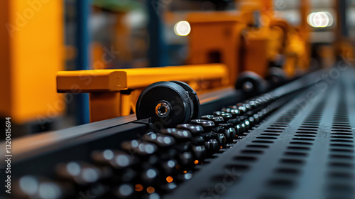 Obraz premium Functional conveyor system featuring roller mechanism captured in realistic...