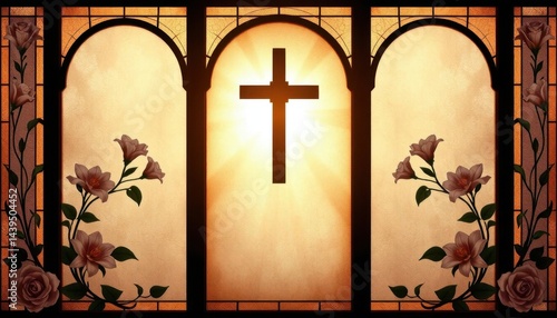 Naklejka premium Funeral flyer design featuring delicate stained glass art with floral patterns and soft lighting