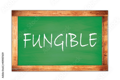 Fototapeta premium FUNGIBLE text written on green school board.