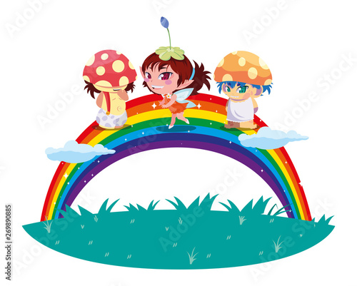 Obraz premium fungus elfs and fairy with rainbow