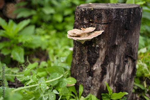 Obraz premium Fungus growing on decaying tree trunk.