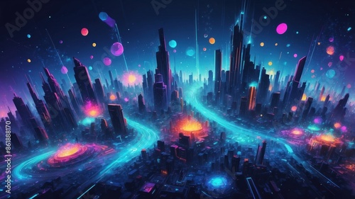 © Damian Sobczyk, Obraz premium Funky synth wave night cityscape