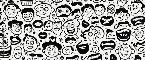 Fototapeta premium funny abstract cartoon faces wall paper, black and white illustration