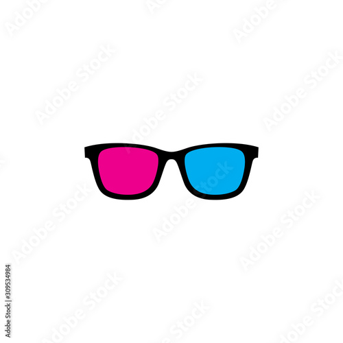 © iniaz, Fototapeta premium Funny and colorful 3d sunglasses with red and pink color