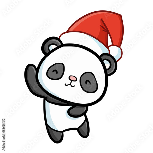 Obraz premium Funny and cute dancing panda wearing Santa's hat for Christmas and smiling -...