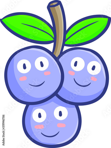 © ogieurvil, Obraz premium Funny and cute three purple grapes characters smiling happily