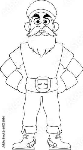 Fototapeta premium Funny and strict man pirate. Guy in a pirate costume. Coloring style