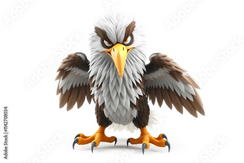 © Sanjaya, Obraz premium Funny Angry Eagle Cartoon with Sharp Eyes and Beak on White Background