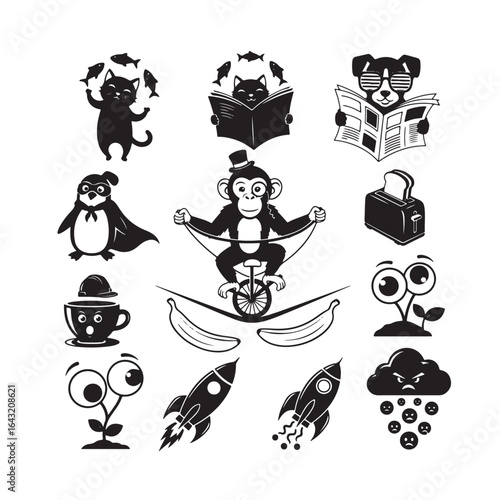 © ANOWAR, Fototapeta premium funny Animal cartoon Silhouette Bundle logo design