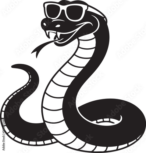 Fototapeta premium Funny Big Snake Wearing Sunglasses Black Silhouette Vector