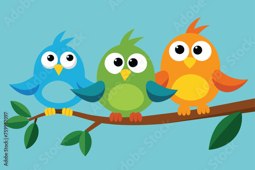 © Vector illustration, Fototapeta premium funny birds on branch clipart vector design 7.eps