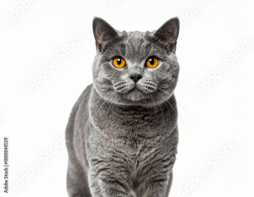 Obraz premium Funny British Shorthair Cat, Cute Grey Pet over White Background