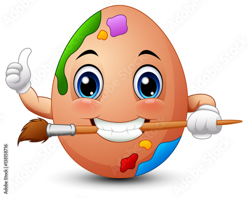 © dreamblack46, Obraz premium Funny brown easter egg painter gives a thumbs up while biting a brush