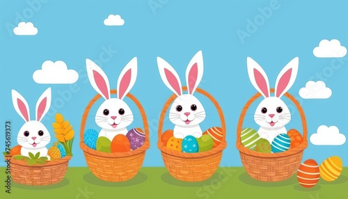 © Eliane, Obraz premium Funny Bunnies and Eggs: An Easter Card Vector Design