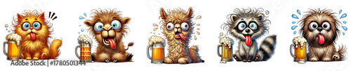 © Zz, Obraz premium Funny cartoon animal with beer mug playful illustration for party isolated transparent background.
