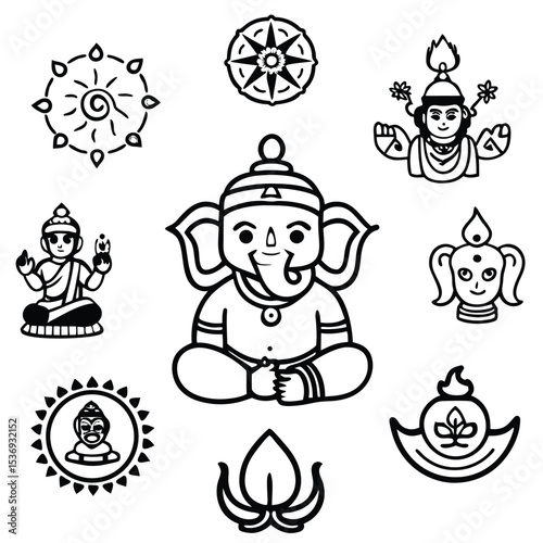 © Merittka, Fototapeta premium Funny cartoon baby and animal Christmas icon set vector illustration