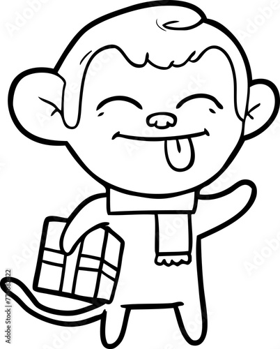 Obraz premium funny cartoon monkey with christmas present
