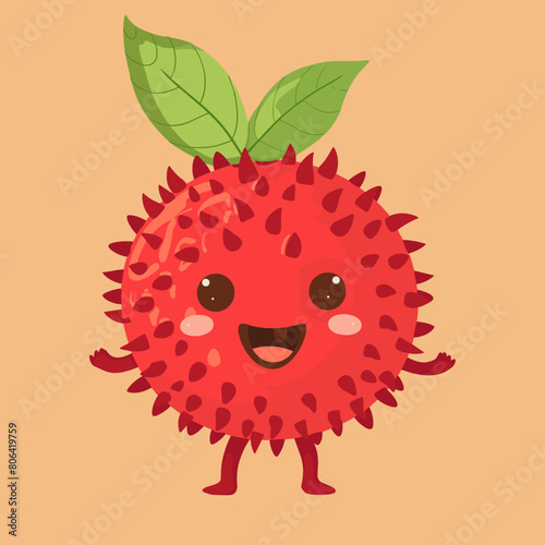 © viklyaha, Obraz premium Funny cartoon Rambutan fruit character. Vector Illustration.
