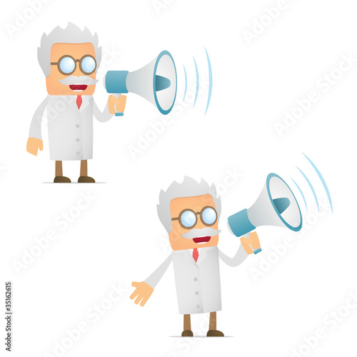 Fototapeta premium funny cartoon scientist with a megaphone