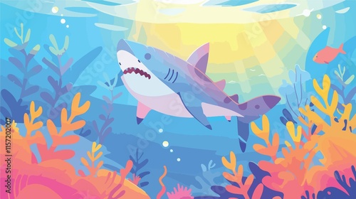 © adwardwill, Fototapeta premium Funny Cartoon Shark Vector Illustration in Flat Style