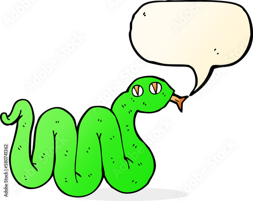 © lineartestpilot, Naklejka premium funny cartoon snake with speech bubble
